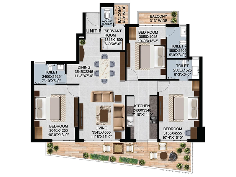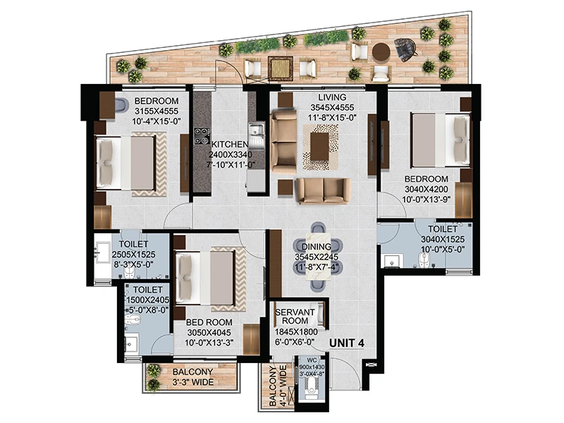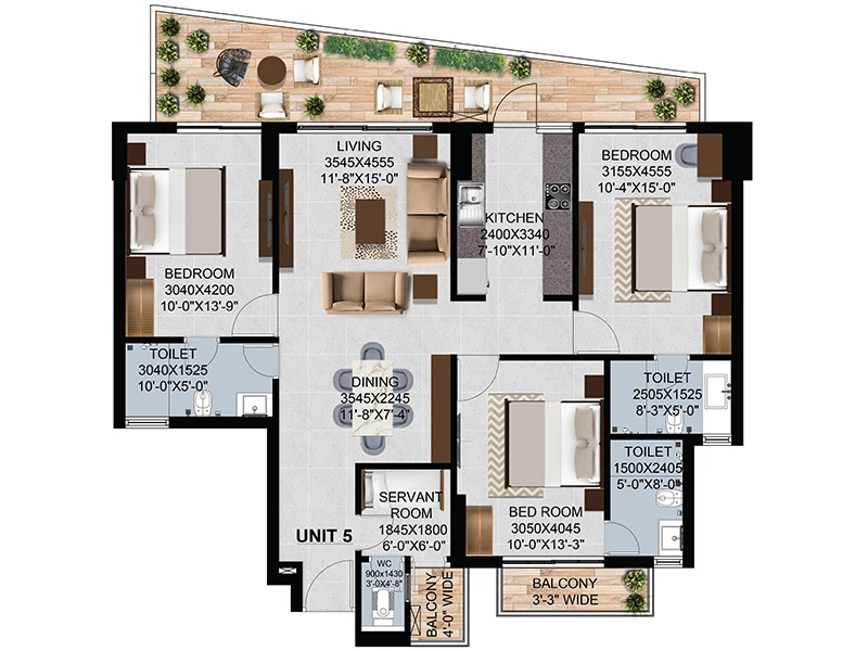 BALCONY AREA 365 Sq. Ft | 33.93 Sq. M.